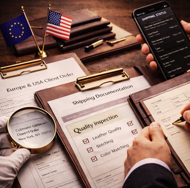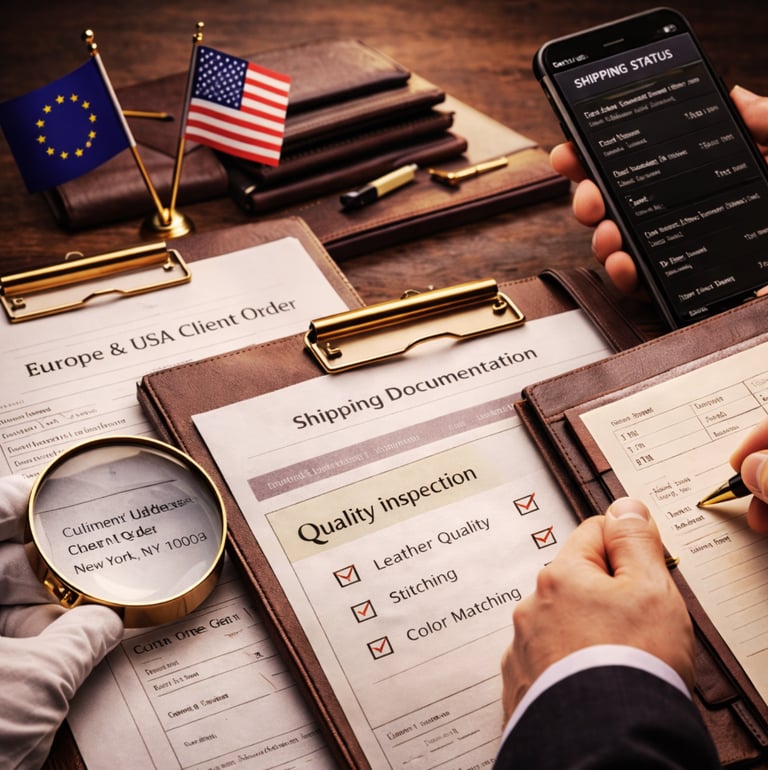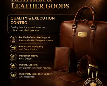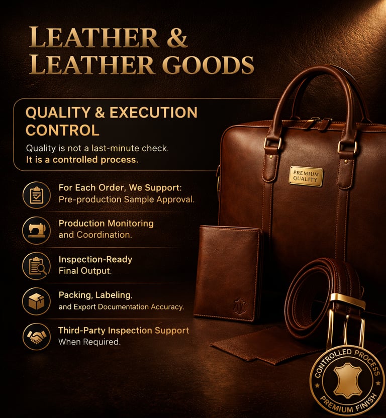Bags, wallets, belts, document holders, travel accessories, corporate gifts, and leather accessories—aligned with buyer requirements.